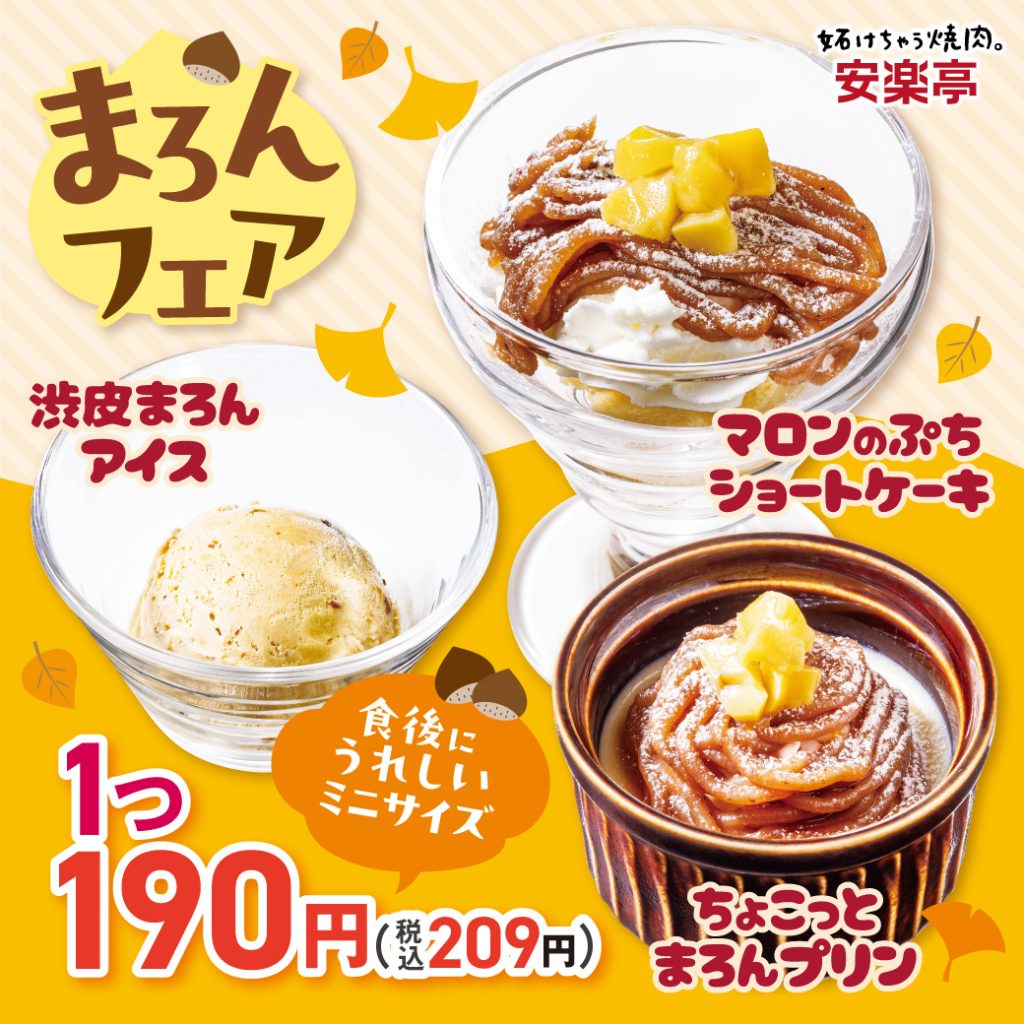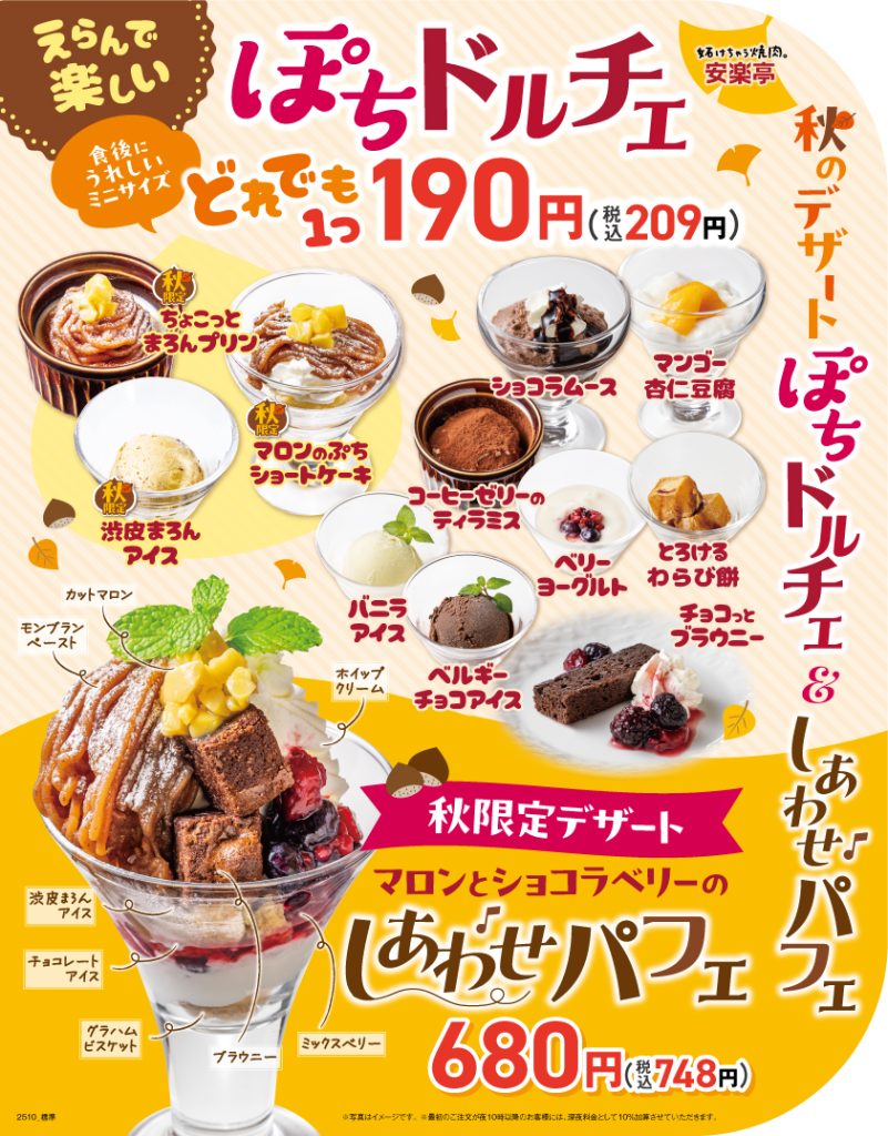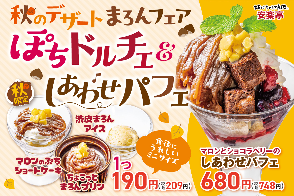 【安楽亭でほっこり、しあわせ】10月8日~栗のやさしい甘みと秋の彩りを楽しむひととき♪季節限定パフェとぽちドルチェ3種が秋風に誘われて新登場!
