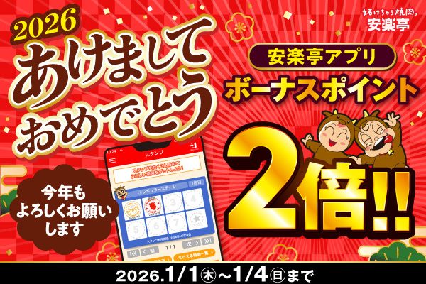 安楽亭アプリ ボーナススタンプ2倍キャンペーン!(1/23~2/16限定)