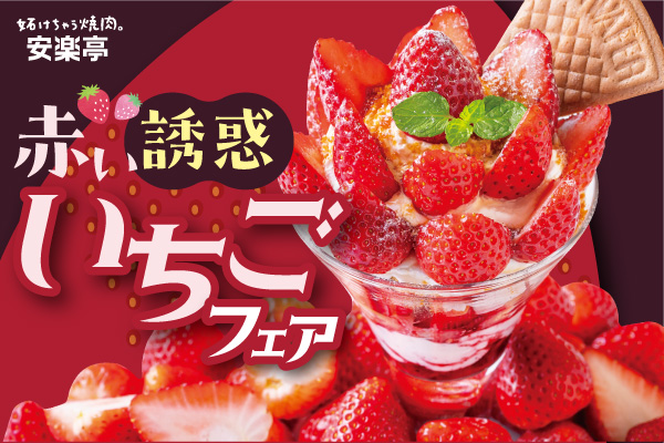 【赤い誘惑♪】安楽亭2月12日~スタート♪「いちごフェア」―春を彩る“赤い誘惑” いちごが甘く解き放つご褒美体験を。焼肉店だからこそ味わえる”食後の至福”3種のいちごデザートが販売スタート!
