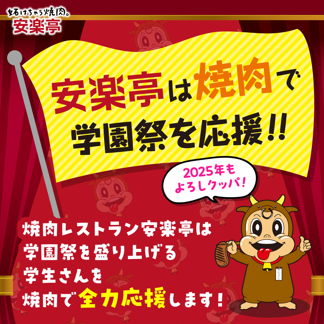 『青春✖焼肉』=地域と青春をジューシーにつなげる !学園祭を盛り上げる学生さんを”焼肉”で応援!株式会社 安楽亭が大学学園祭へ今年も協賛活動を行います。