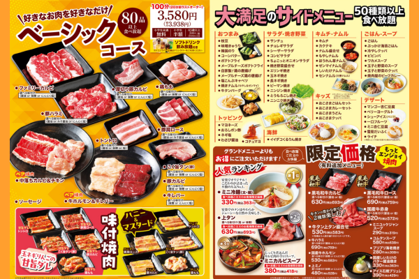メニュー詳細は 安楽亭ホームページからご確認ください。