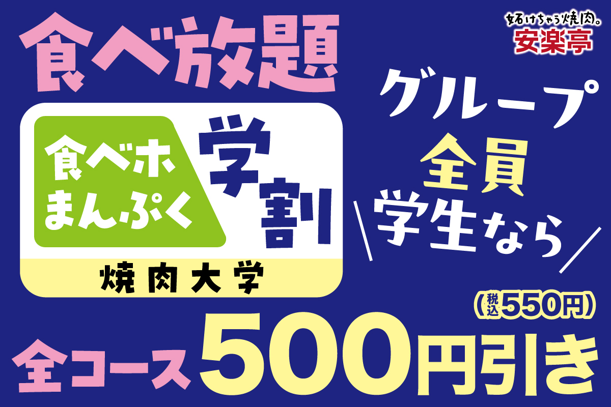 食べホ学割スタート!全コース500円(税込550円)引きに!